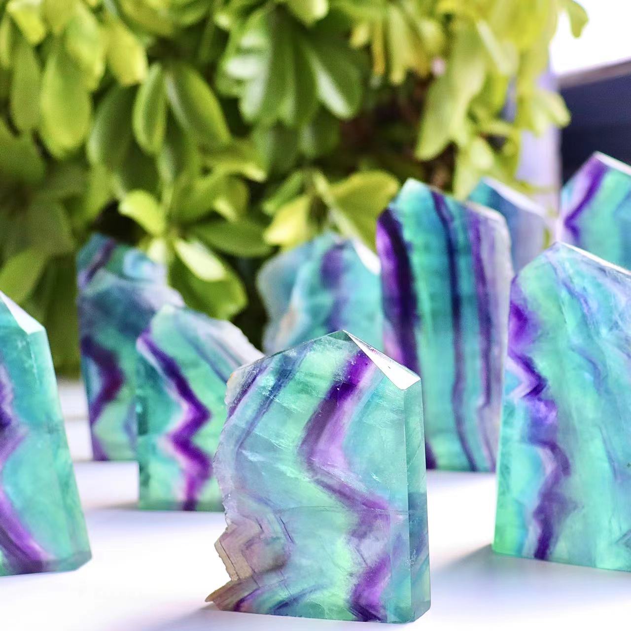 Crystal Tower Flat Rainbow Fluorite Tower For Wholesale Price
