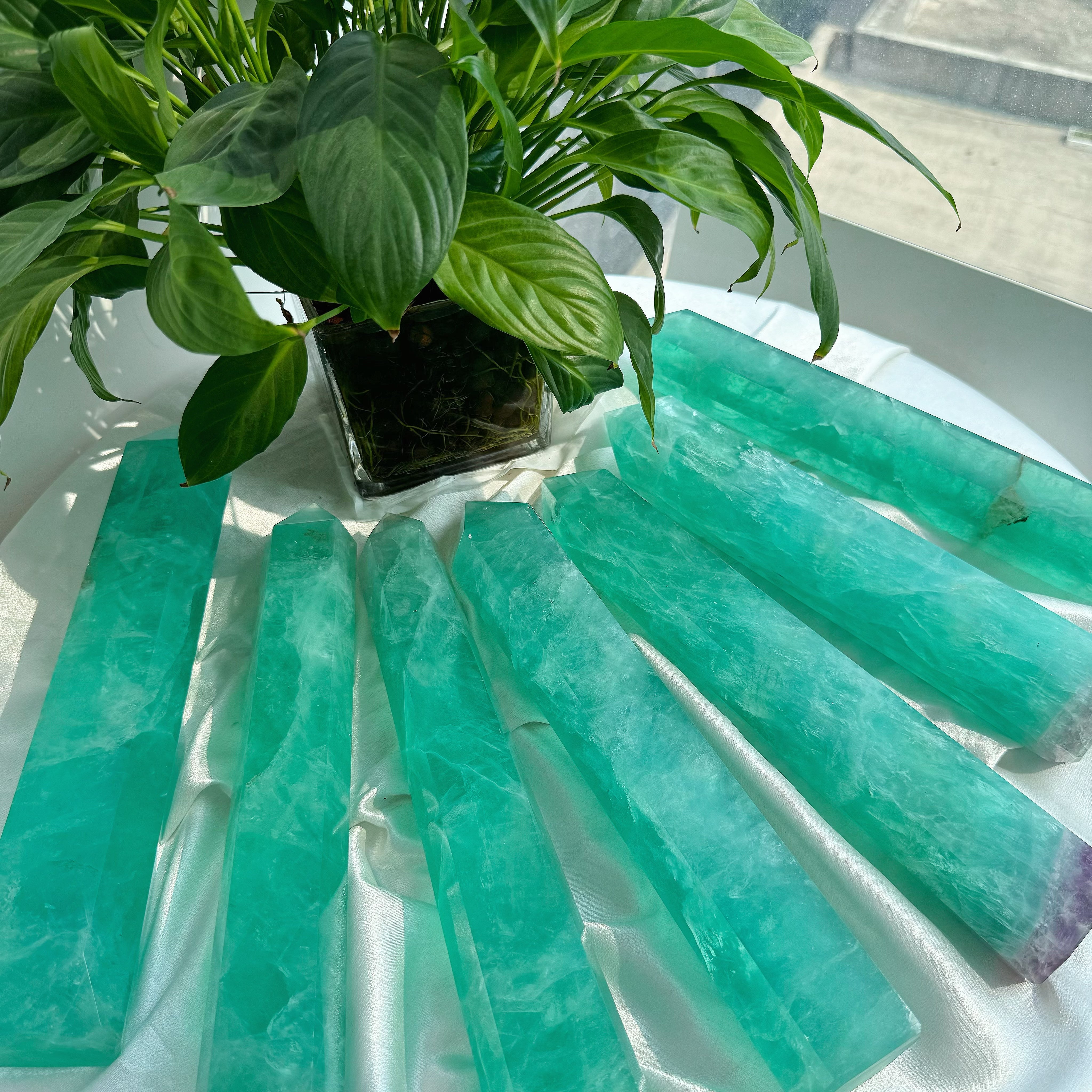 Add a touch of natural beauty to your space with our Crystal Tower Green Fluorite Towers. These stunning pieces are perfect for wholesale purchase, adding a touch of elegance to any collection. With its unique green color, this crystal tower is not only visually appealing but also believed to improve focus and concentration.